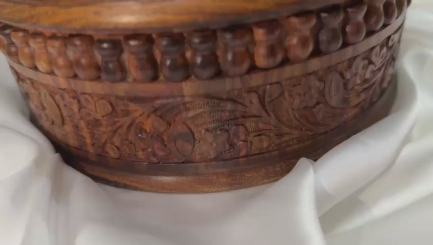 Handcrafted Wooden Storage Box with Ornate Carved Lid